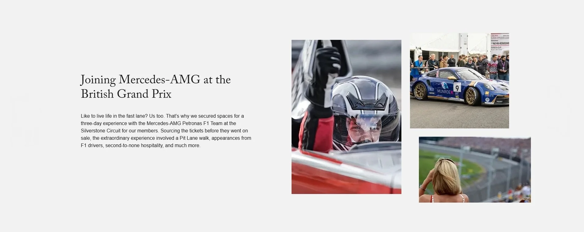 With unmatched access to the world’s most sought-after events, our members are always at the heart of life’s most extraordinary moments — from the excitement of being trackside at the F1 Grand Prix to the elegance of mingling with stars on the red carpet.